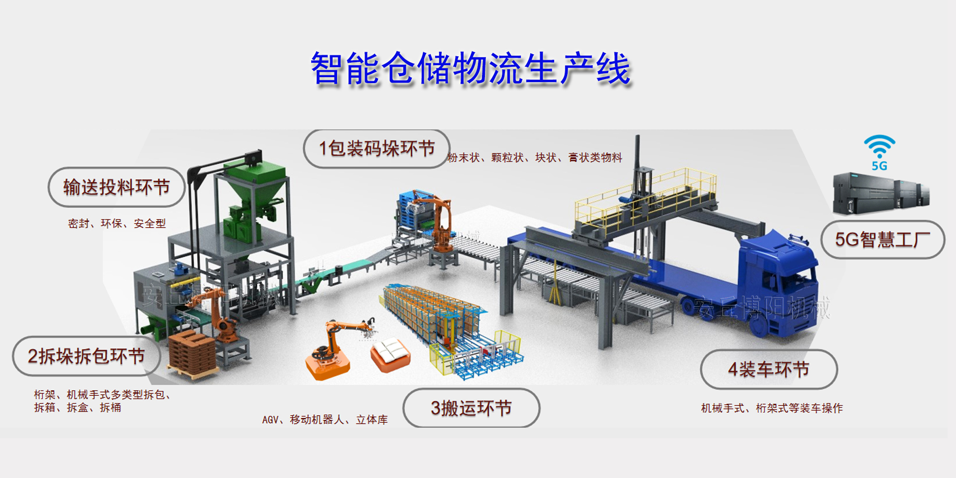 可用于倉庫、車站、貨場、碼頭等 包裝、裝卸、運儲行業(yè)的倉儲搬運物流裝備的智能生產(chǎn)線